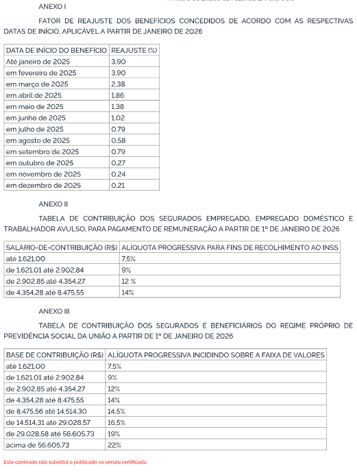 Acesse em Portaria Interministerial MPS/MF nº 13, de 9/01/2026
