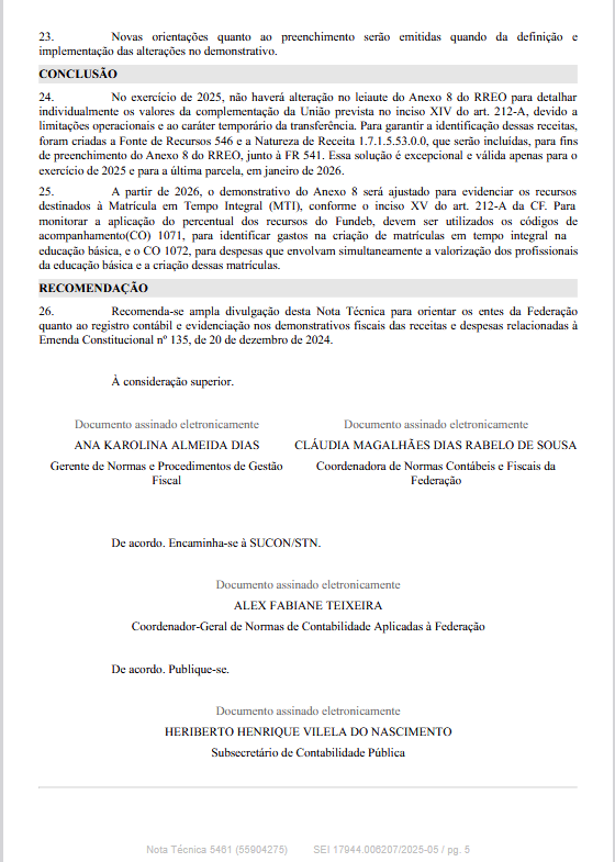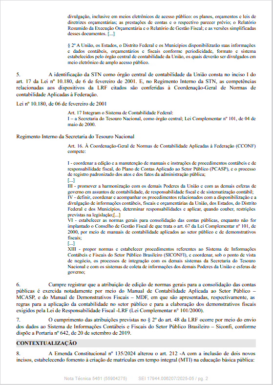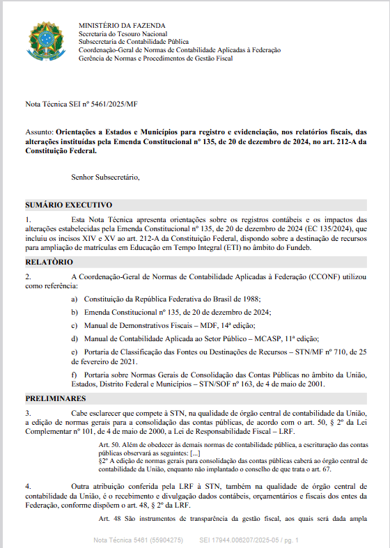 STN edita Nota Técnica SEI nº 5461/2025/MF contendo normas sobre registros contábeis decorrentes da EC 135/202