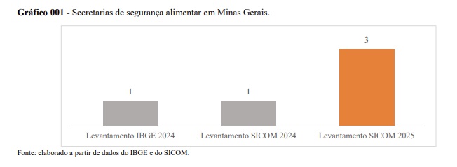 O estudo “Segurança alimentar nos municípios de Minas Gerais: análise de governança, adesão a programas e infraestrutura”, da série “Conhecer para Fiscalizar”, do Tribunal de Contas do Estado de Minas Gerais (TCEMG), identificou que somente três administrações municipais mineiras – Belo Horizonte, Fruta de Leite e Itabira – contam, atualmente, com secretarias dedicadas exclusivamente à segurança alimentar.